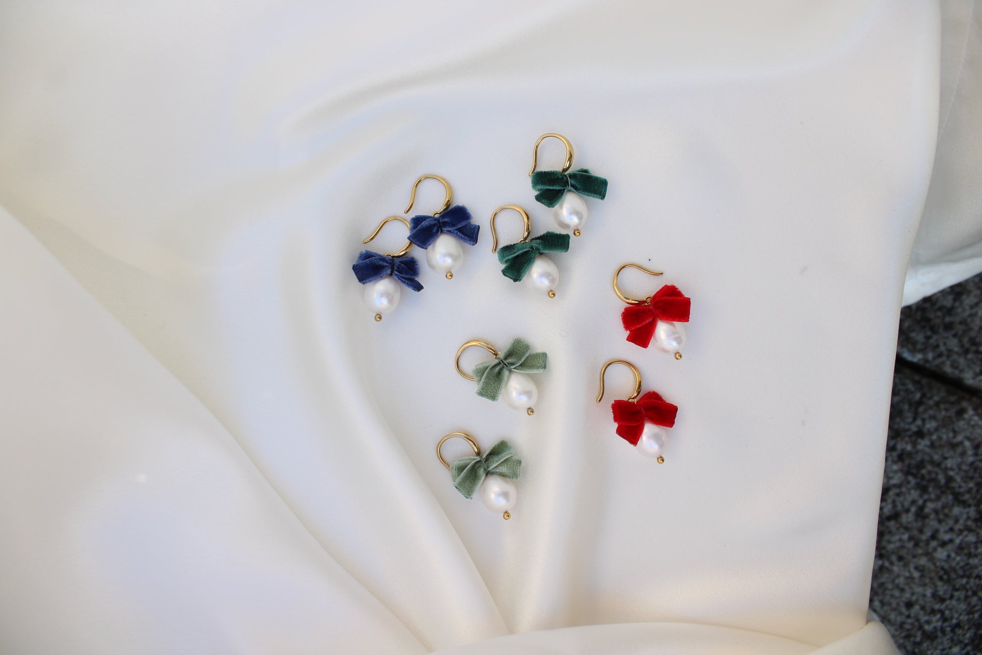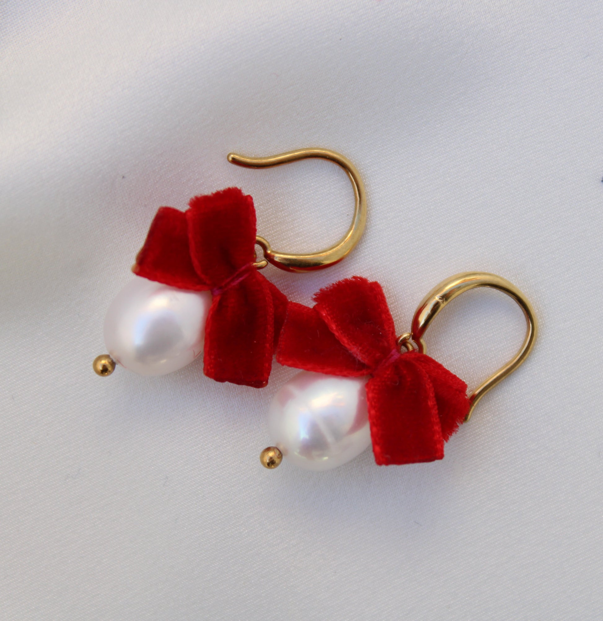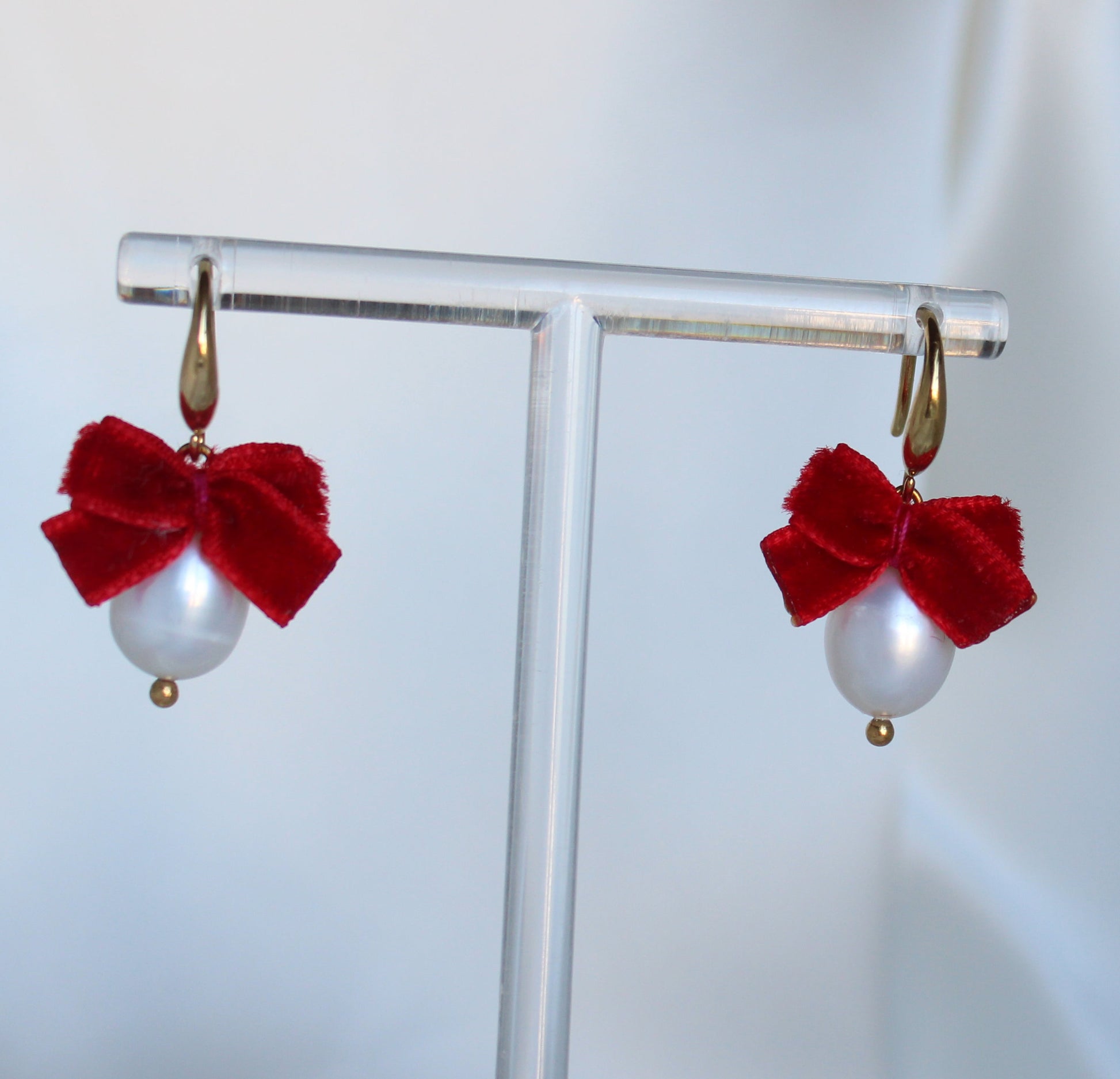 Beautiful Pearl earrings with an elegant Velvet Bow on top!