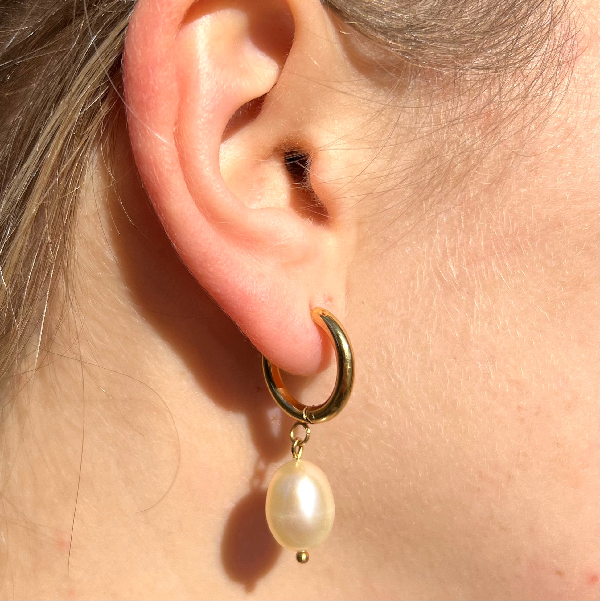 My perfect everyday hoop with a dainty freshwater pearl dangling from it! Great with every look, classy yet understated, elegant and timeless!