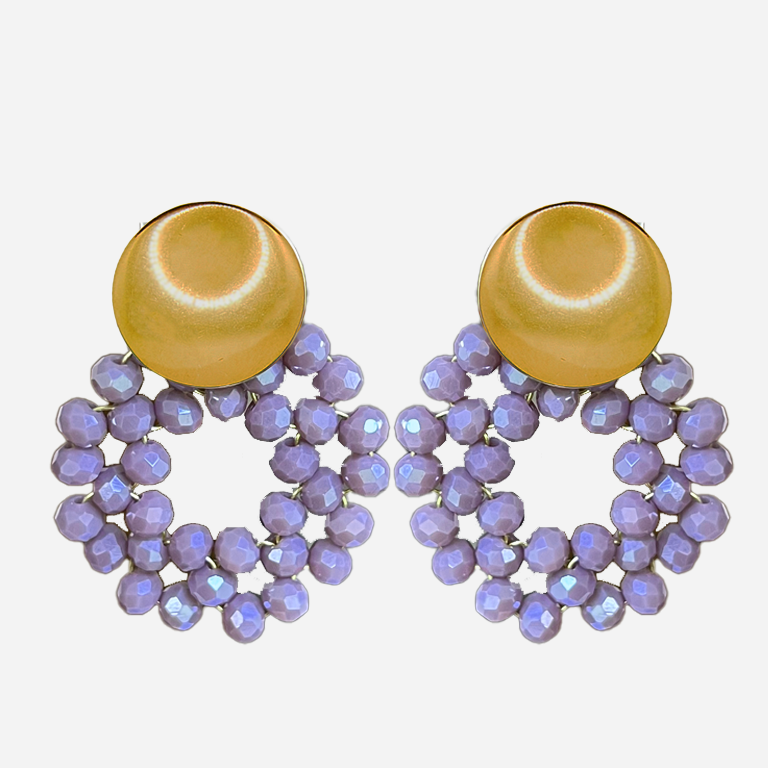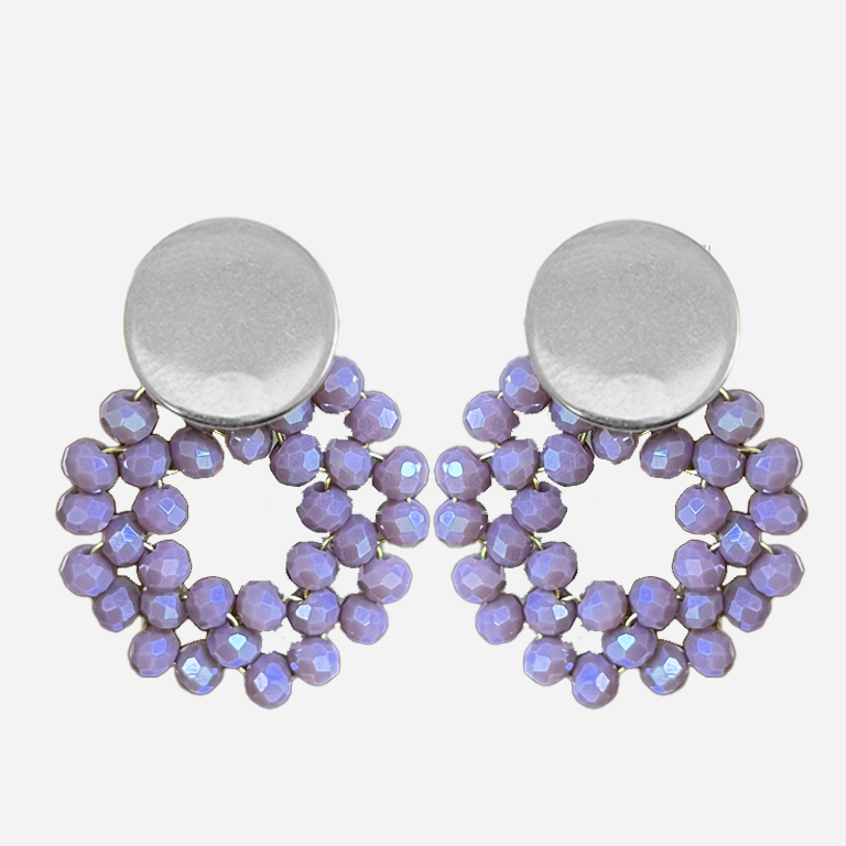 Introducing Tiny Anne in a beautiful lilac. These Anne earrings feature a beautiful combination of glass beads and a metallic closure for a classic, elegant look. These earrings have a unique cloud shape design, making them a timeless addition to any wardrobe.