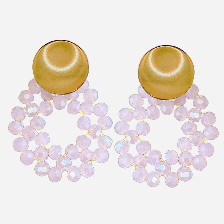 Introducing Tiny Anne in a beautiful light rose. These Anne earrings feature a beautiful combination of glass beads and a metallic closure for a classic, elegant look. These earrings have a unique cloud shape design, making them a timeless addition to any wardrobe.